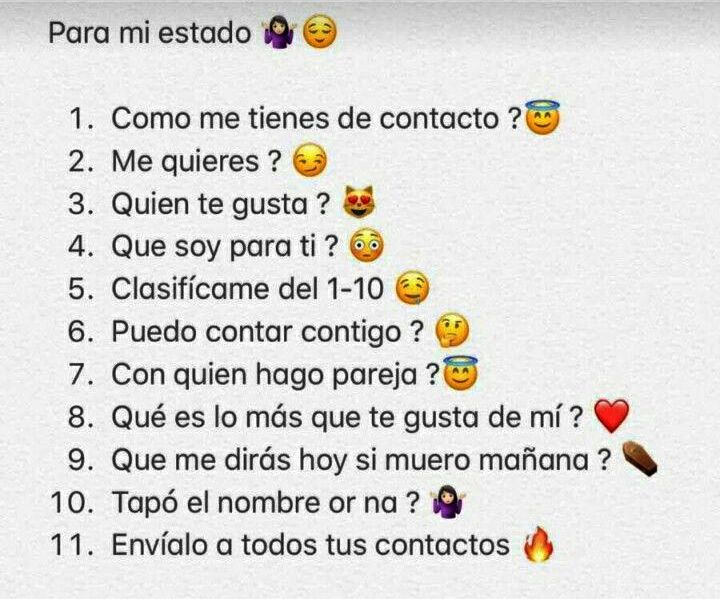 La finalidad principal de esta app es permitir una comunicación fluída y regular entre las personas y una de las formas en las que puedes lograr entablar conversaciones con tus contactos es a través de tus estados. Ya sea por medio de juegos, preguntas, indirectas, etc, puedes lograr llamar la atención de personas que te interesen. Y por qué no, captar la atención de esa persona especial ❤️